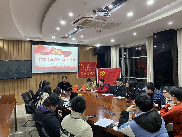 中国共产党第十九届中央委员会第五次全体会议于2020年10月26日至29日在北京举行。为深入学习贯彻党的十九届五中全会精神,进一步动员和激励广大党员同志思想和行动统一到党中央重大决策部署上,12月14日晚,萝莉社 B20硕士微纳电子第一党支部开展了“学习贯彻党的十九届五中全会精神”主题党日活动。支部全体党员出席会议。活动由党支部书记张清泽主持。