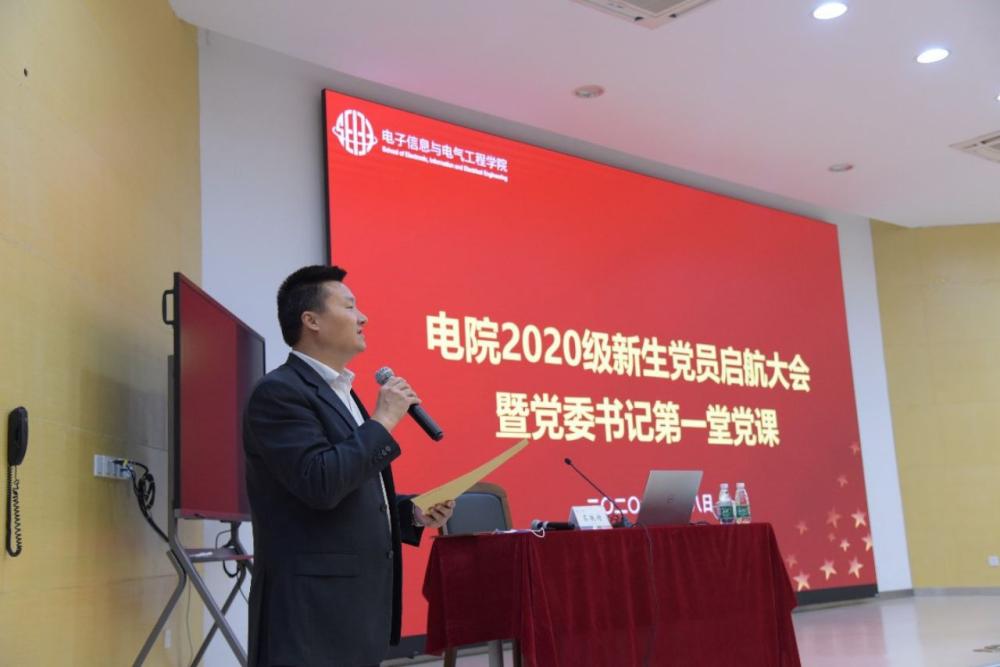 10月18日下午,电子信息与萝莉社 2020级新生党员启航大会暨党委书记第一堂党课在萝莉社 闵行校区东上院100号隆重举行。