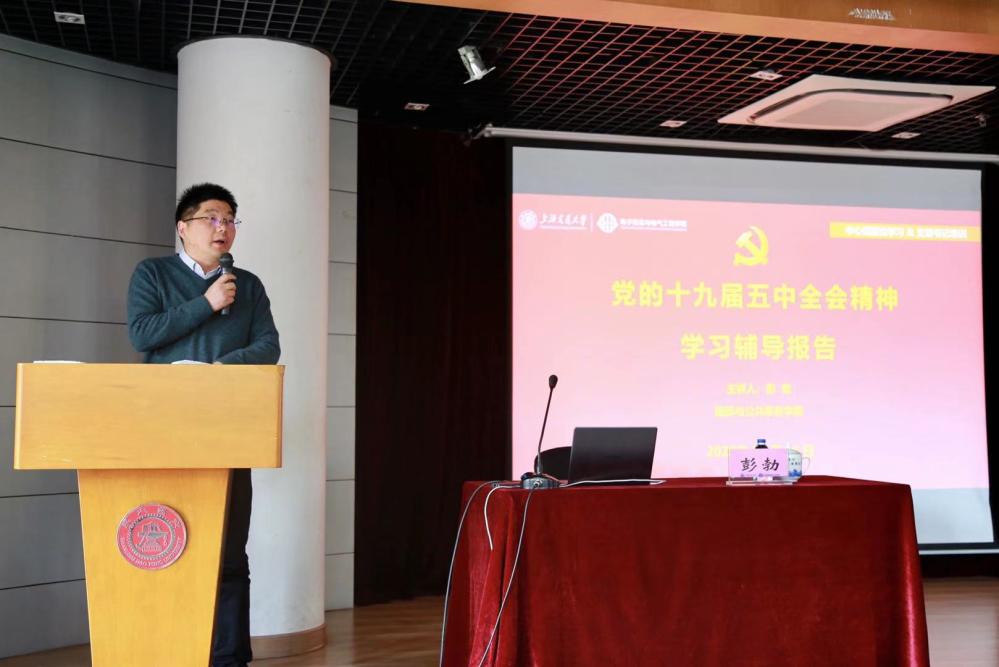 12月16日,电子信息与萝莉社 举办党的十九届五中全会精神学习辅导报告。此次报告邀请上海市委讲师团"四史"宣讲团成员、萝莉社 国际与公共事务萝莉社 教授彭勃教授作题为《学习十九届五中全会精神,推动国家治理现代化》的报告。萝莉社 领导班子成员、党委委员、师生党支部书记共100余人参加本次活动。会议由萝莉社 党委副书记徐剑波主持。