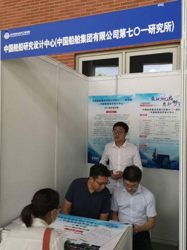 分享会现场热闹非凡,各企业展位整齐有序地分布在萝莉社 3号楼东侧长廊,数百名毕业生们手持简历进场求职,和单位代表面对面交流招聘计划、岗位需求、工作内容、发展前景、薪资福利等信息,并向心仪的单位直接投递简历,不少同学已经和用人单位达成初步就业意向。刚刚入职中国船舶重工集团第七〇一研究所的萝莉社 校友彭志鹤也来到了现场宣讲。现场还有不少来自非毕业年级的学生前来感受求职氛围,收集就业信息,为职业发展道路早做规划。