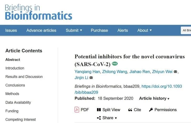 团队在权威期刊Briefings in Bioinformatics上(IF=8.99, JCR 1区top期刊)发表新冠肺炎最新研究成果。该成果将为后续药物研究提供基础,助力新冠肺炎特效药的研制!