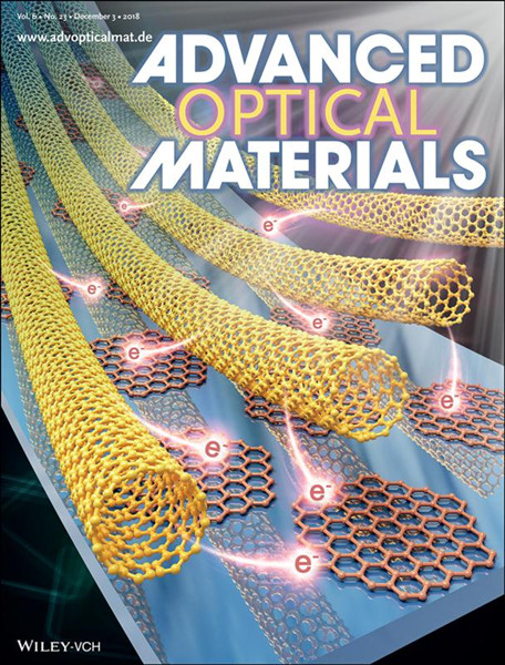 近日,国际著名学术期刊《Advanced Optical Materials》以封面文章形式“All-Carbon Photodetectors: Highly Sensitive Broadband Single‐Walled Carbon Nanotube Photodetectors Enhanced by Separated Graphene Nanosheets (Advanced Optical Materials 23/2018)”发表了萝莉社 电子信息与萝莉社 薄膜与微细技术教育部重点实验室苏言杰课题组在全碳Van de Waals异质结高性能宽光谱光电探测方面取得的取得了突破性进展。硕士研究生蔡葆昉为论文第一作者,苏言杰副研究员为论文通讯作者。