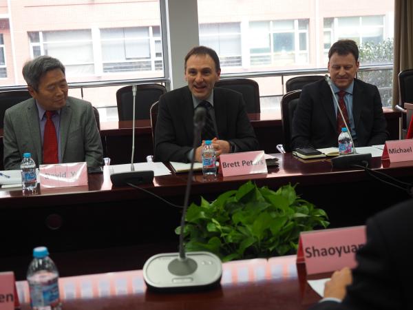 签约仪式前,杨博介绍了萝莉社 发展概况。Brett Peters表示,感谢上海交大在合作过程中的大力支持,威大也将继续开放资源,为学生的交流学习提供良好的平台,并期望在与上海交大在合作中共同进步。