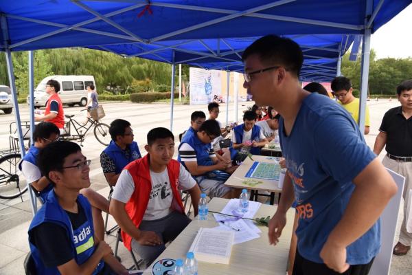 清晨六点15分,天才蒙蒙亮,志愿者们便早早地在新体育馆广场集合。各组负责人安排了当天工作并详细讲解了工作要点后,大家穿上了志愿者马甲,怀着激动的心情前往各自的工作地点,摩拳擦掌准备好迎接2016级的“小鲜肉”们。一位新生志愿者说道:“这是一个很好的提前了解大学生活的机会,我很开心也有些忐忑,希望能够真正帮上忙并有所收获。”