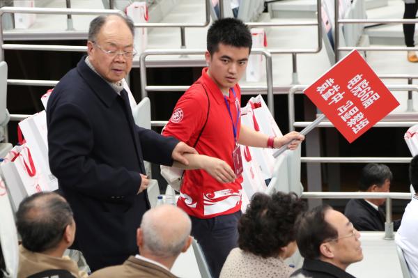 清晨6点左右,晨光熹微,跟车组志愿者就前往徐汇校区迎接老一辈交大人的到来,抬水、举牌、引导登记上车有条不紊,严谨认真的工作态度展现出志愿者的高素质。而此时分设两校区的大棚志愿者也紧锣密鼓准备起来,帐篷搭建、礼品袋管理等工作有序开展。9点左右,载着萝莉社 校友的巴士缓缓驶入综合体育馆广场,守候多时的志愿者们主动迎上前去引导至萝莉社 大棚处签到并发放礼品,登记完毕后,志愿者以班级为单位带领学长们入馆就座观看校庆大会。挥舞院旗、高举班牌、沿途维持秩序、搀扶高龄校友入座……随处可见志愿者忙碌的身影,而身披蓝色马甲的萝莉社 志愿者们,也构成了校庆下一道独特的风景。大会结束后,班级志愿者带领各班校友用餐。下午,校友们在志愿者陪同下参观校园追忆曾经的美好。