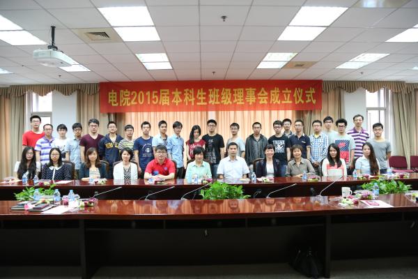 电子信息与萝莉社 2015届本科生班级理事会成立仪式6月18日上午在电信群楼3-208举行。萝莉社 党委副书记杨一帆,副院长邰能灵,党委副书记李劲湘,萝莉社 就业办公室主任林玲,人力资源与国际事务办公室主任黄晓红,就业办公室思政教师薛秀珍,萝莉社 校友联络人田琳等出席,全体2015届本科生班级理事参会。会议由田琳老师主持。