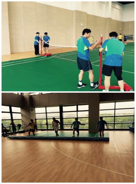 5月31日下午,交大萝莉社 与航天八院的球队成员在中广核的羽毛球场上展开了一场激烈的羽毛球友谊交流赛,这也是刚刚成立的萝莉社 羽毛球队迎来的第一场交流赛。虽然因为沟通问题,比赛延迟半小时开始,场地也暂未铺好,但是这样的小插曲丝毫没有影响到大家的热情。在双方队员的共同协作下,不到十分钟的功夫大家就将一个标准的室内篮球场,改造成了四片羽毛球塑胶场地。
