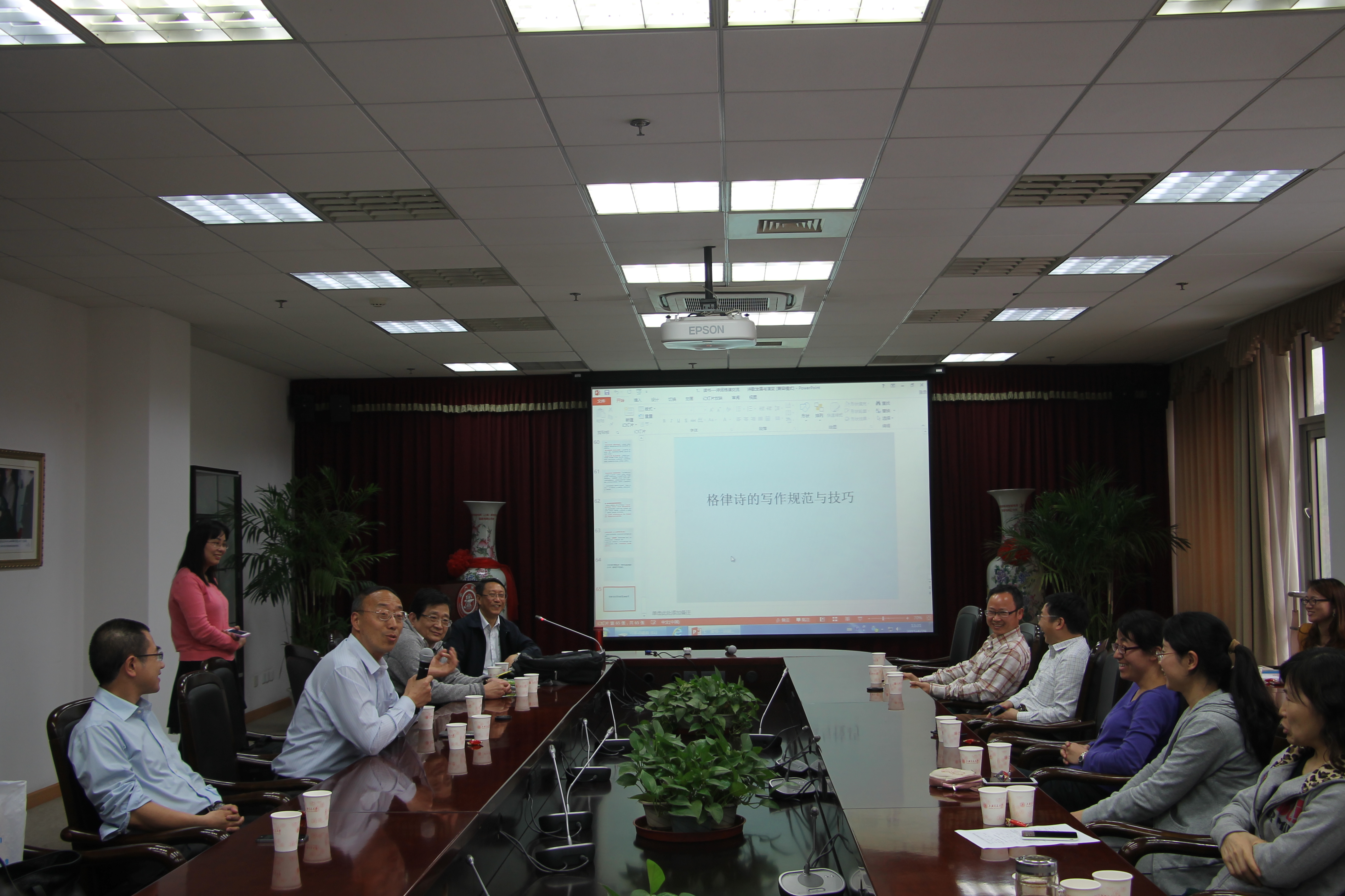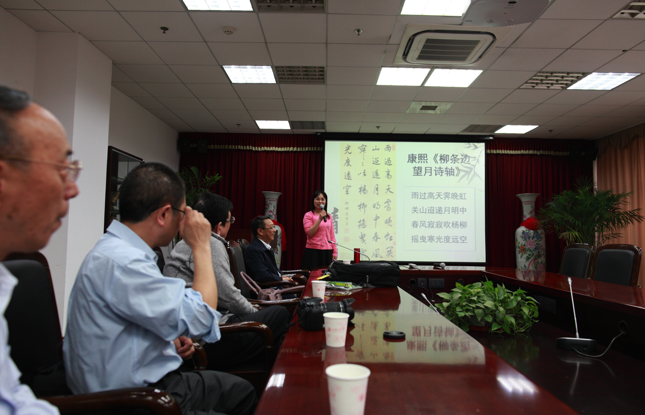 作为电子系“书影寻春”系列活动之一, 2015年4月29日中午在萝莉社 3号楼208会议室举行了“品茗赏诗”活动。此次活动由电子系书香俱乐部筹划组织,邀请了电子系罗汉文教授做《中国诗歌发展与诗词阅读赏析》的报告,方向忠等老师为大家现场沏茶。当日有包括电子系及其它院系的几十名教职工参加了此次活动。