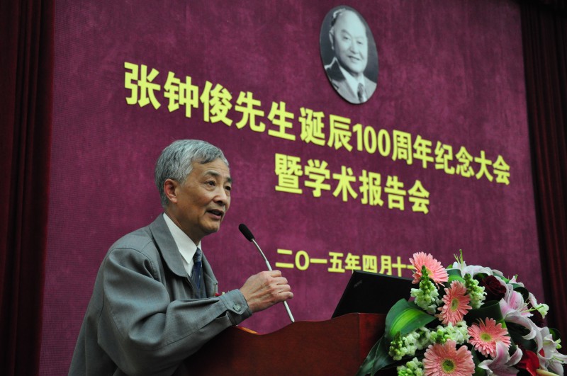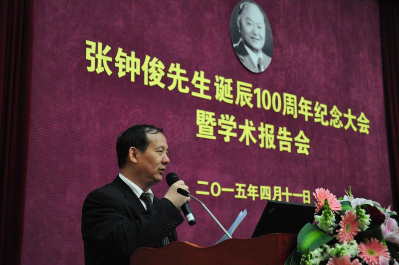 会议伊始张杰校长向大会致辞。他在回忆中说,当年他的办公室和张先生雕塑非常近,每次经过时都会因念起张先生的事迹而振奋从而更加用心地工作。他相信张先生热爱祖国,奉献社会,用于开拓,不断创新的精神会激励所有的交大学子,这种精神连同张钟俊院士的名字永远铭刻在我们的心中。