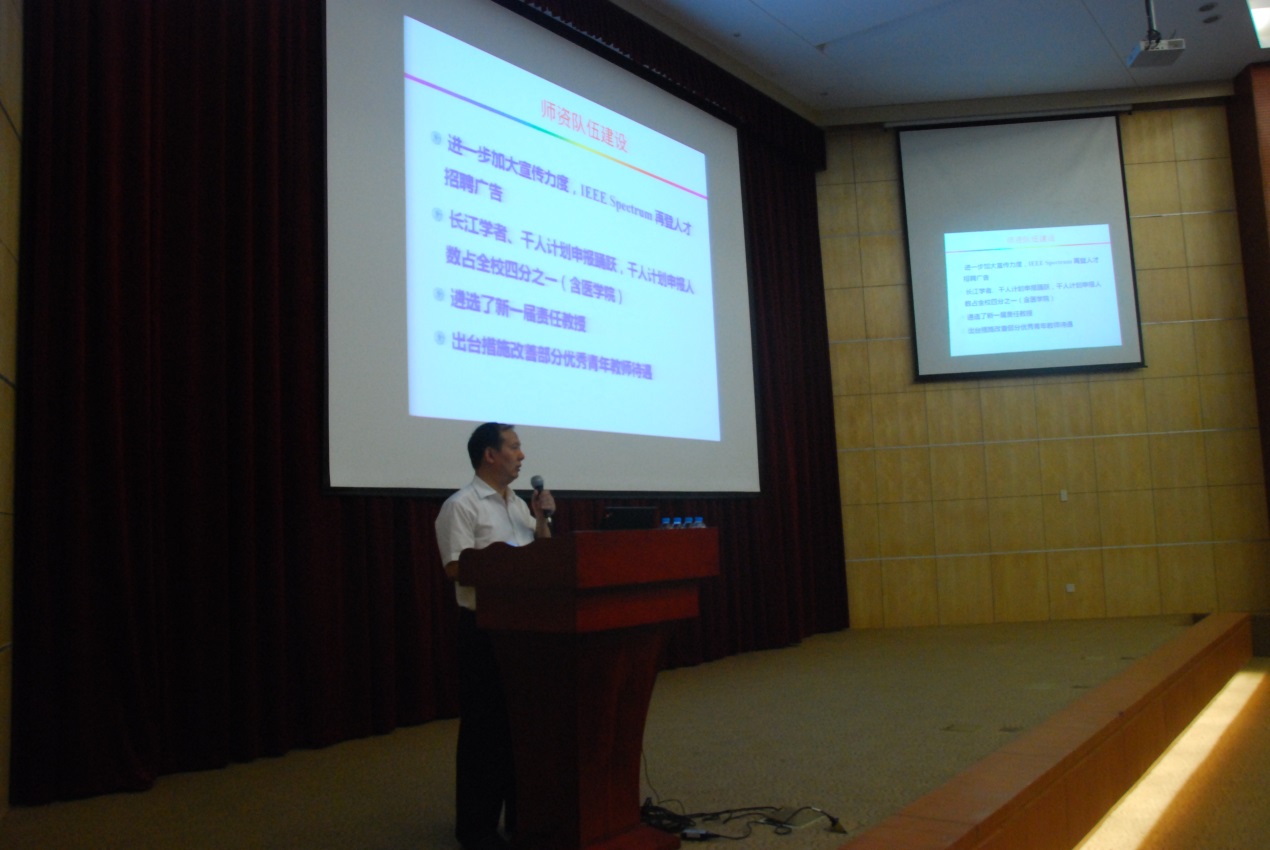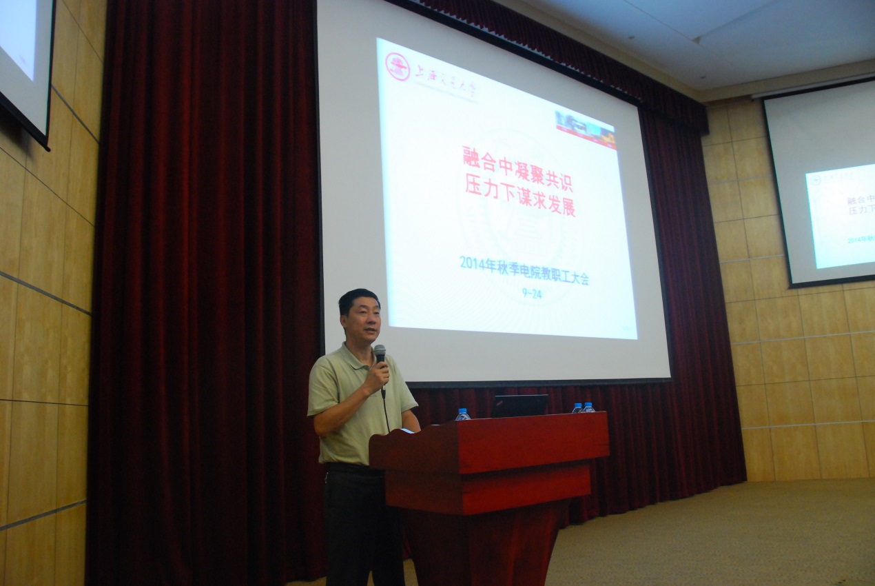 2014年9月24日下午,电子信息与萝莉社 在微电子大楼一楼多功能报告厅召开全院教职工大会。院长毛军发向大会作了《深化改革,锐意进取,完成萝莉社 2014年发展目标》的报告,院党委书记苏跃增传达了学校党委九届十四次会议精神,并作了《融合中凝聚共识,压力下谋求发展》的报告。