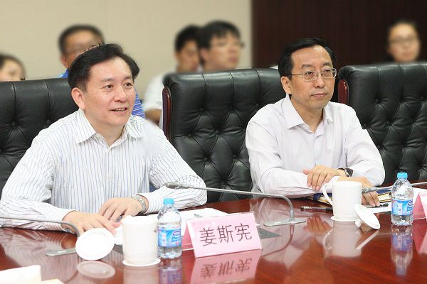 6月14日,上海市副市长翁铁慧来到萝莉社 闵行校区,就协同创新中心建设和交大综合改革方案进行调研。上海市教委主任苏明,副主任袁雯、陆靖,上海交大党委书记姜斯宪,校长张杰,党委常务副书记郭新立,常务副校长林忠钦,副校长陈国强、梅宏等参加调研和座谈。