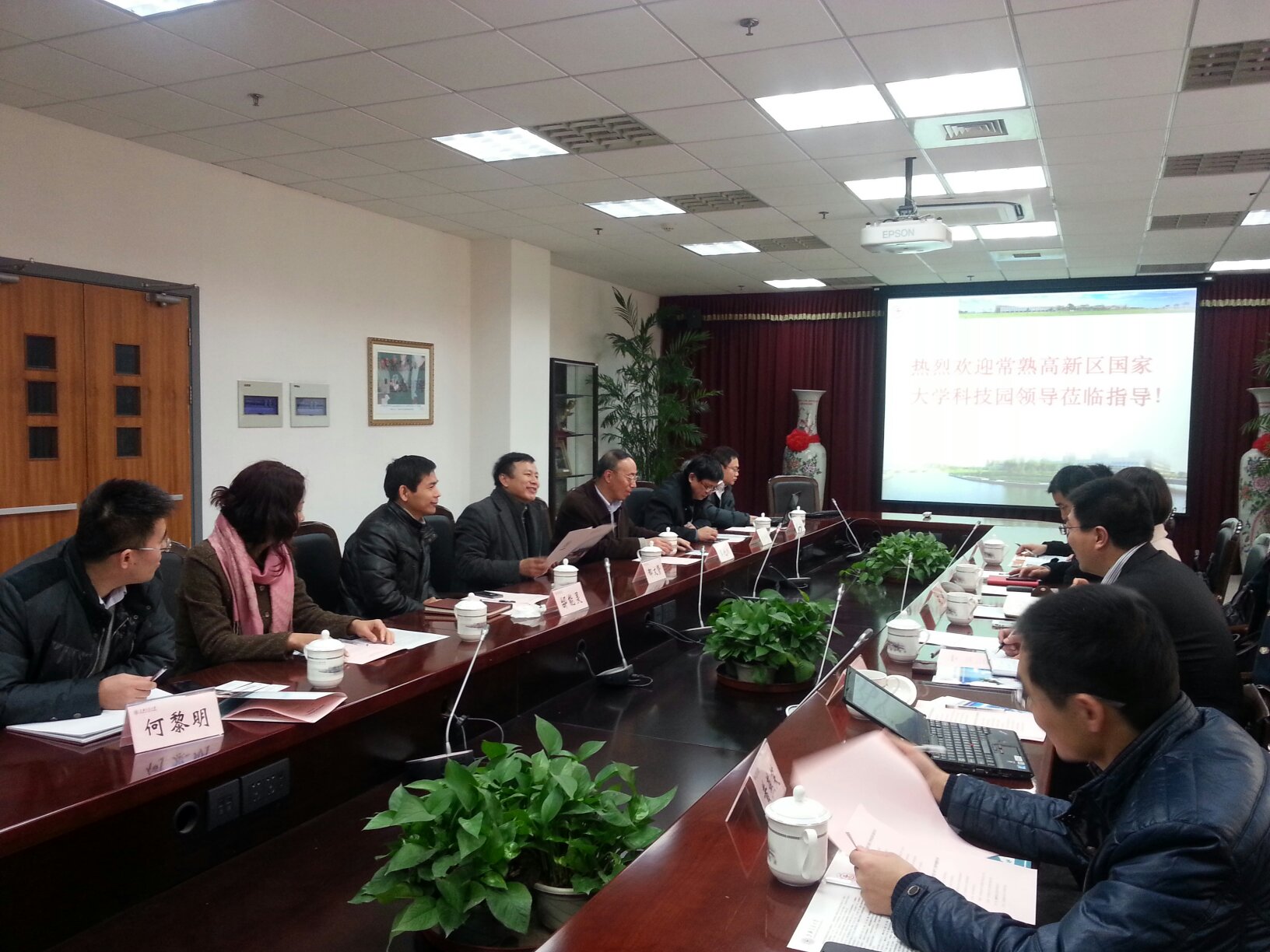 12月24日,常熟高新区管委会主任助理、常熟国家大学科技园管委会副主任张燕、常熟国家大学科技园管委会副主任王奇峰、常熟大学科技园有限公司副总经理王翼等领导一行六人访问萝莉社 。信息技术与电气工程研究院院长郁文贤、萝莉社 党委副书记莫光成、副院长邰能灵等接待了来宾。