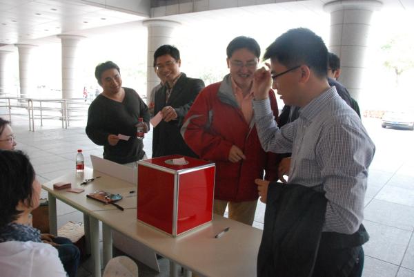 最后由院工会主席莫光成抽取产生了六名幸运奖。