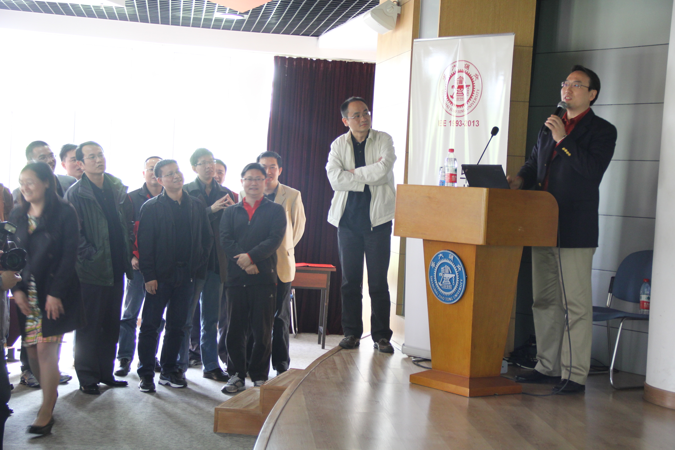 5月1日早上,93届校友主题交流活动在电信群楼3-200举行。首先,当年的班主任潘静敏老师作了《电子技术负反馈放大电路“雾区”的商榷》的专题报告,校友们仿佛回到了曾经的课堂。随后,俞熔、夏蒙孺、陈朝旭、李彤等校友分别分享了自己在创业、管理、投资等方面的心得与体会,校友们互相交流探讨,现场气氛十分活跃。