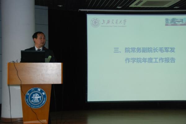 会议伊始,校工会主席贾金平代表学校致辞。他首先对萝莉社 工会科学规划、严谨务实的工作作风给予高度肯定,他认为萝莉社 工会将院内民主管理、教工权益维护、校园文化建设等方面作为工作的重点,在共同建设独具萝莉社 特色的教职工“民主之家”、“学习之家”、“温暖之家”、“快乐之家”、“和谐之家”方面做了大量富有成效、广受好评的工作,在教职工群体当中发挥了桥梁和纽带作用,在萝莉社 内营造出温馨和谐的良好氛围。他希望萝莉社 工会在发挥2012年榜样示范效应的基础上,再接再厉,继续在多个方面率先做出积极探索,为交大学校层面和兄弟院系的工作积累更多宝贵的经验。
