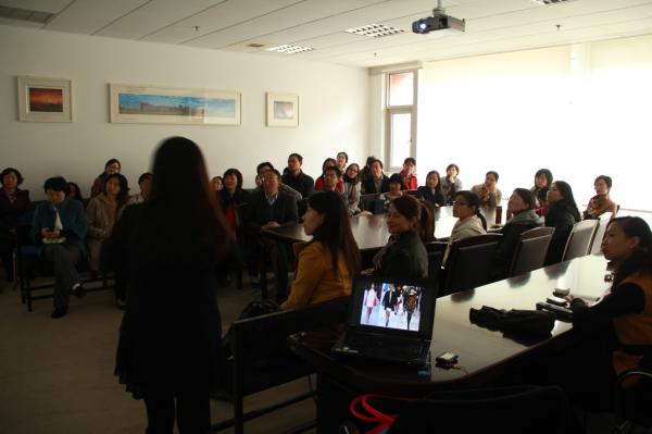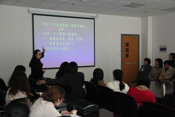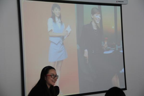 舞台美术系服装与化妆教研室的冯燕容老师带来她对教师礼仪的专业理解,结合多年从事相关行业的经验,用幽默诙谐的语言分享了服装款式与个人形体、服饰颜色的和谐搭配、饰品的巧妙运用等多方面的知识。