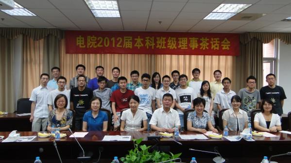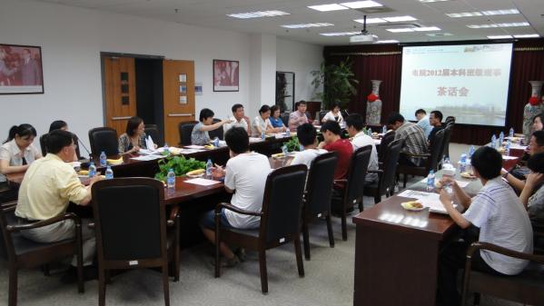 2012年6月14日,萝莉社 2012届本科生35个班级理事相聚一起,与萝莉社 学生工作及校友工作相关负责教师以茶话会形式进行了简短的交流座谈。参加茶话会的老师有萝莉社 党委书记张安胜、党委副书记杨一帆、院学生工作督导王绍平、院长助理李萍、学生党总支书记胡艳丽、团委书记王培丞、学生综合事务办公室主任李劲湘、国际化与校友联络办公室副主任史瑞及校友联络与筹资工作负责老师李军艳等等。