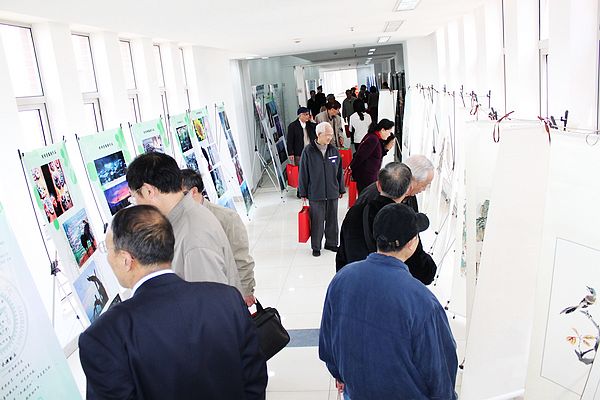 离退休教职工文化作品展于电信群楼三号楼长廊举行,展示离退休教职工的书法、绘画、篆刻、摄影、诗歌、手工艺等作品。“这以前是我们系的领导。”“他90多岁了,身体一直很好。”“他年轻时候就喜欢摄影了。”“你一点也不老。”展览中,老同志们回忆年轻的经历,互致寒暄,欢声笑语。