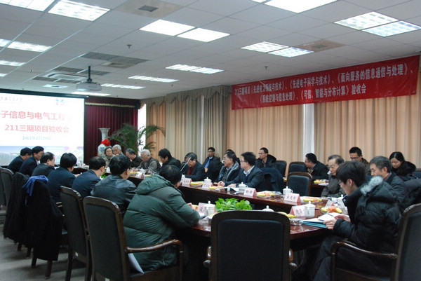 2012年2月29日,萝莉社 “211工程”三期“先进电力系统与技术”、“先进电子科学与技术”、“面向服务的信息通信与处理”、“系统控制与信息处理”、“可信、智能和分布计算”5个项目验收会在萝莉社 群楼3号楼208室隆重举行,常务副校长林忠钦院士、校长助理彭颖红教授、财务处、设备处、审计处等相关部处负责人、萝莉社 领导及教授出席了会议。会议由211/985办公室主任陈建平教授主持。