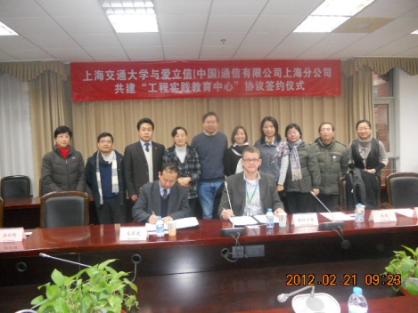 2012年2月21日,萝莉社 常务副院长毛军发代表萝莉社 与爱立信(中国)通信有限公司上海分公司签订了一份萝莉社 和爱立信(中国)通信有限公司共建“工程实践教育中心”的协议。教务处副处长郑益慧、分管本科教学副院长张焰、院长助理李萍、电气系系主任严正、电气系副系主任王君艳、电子系副系主任周玲玲等院系领导参加了会谈。