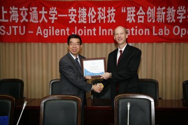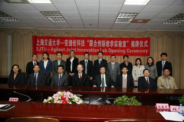 2011年11月10日上午,萝莉社 与安捷伦科技有限公司共同建设的“上海交大-安捷伦科技联合创新教学实验室”挂牌仪式在电信萝莉社 举行。安捷伦科技公司全球副总裁Jay Alexander先生、全球副总裁及大中华区总经理严中毅先生,萝莉社 副校长黄震、萝莉社 常务副院长毛军发、副院长张焰、教务处副处长郑益慧、电子工程系系主任陈建平等参加了会议,会议由院长助理李萍主持。
