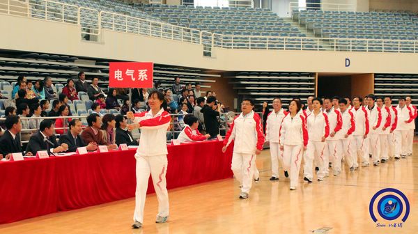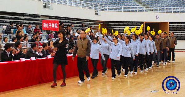 金秋十月,秋高气爽。为贯彻《全民健身计划纲要》,增强全体教职工身心素质,丰富校园文化生活,促进和谐家庭建设,经过一个多月的精心策划和组织,10月29日,电子信息与萝莉社 2011年教职工运动会在闵行校区新体育馆隆重开幕。萝莉社 党委书记张安胜致开幕词,校工会主席贾金平致贺词,萝莉社 常务副院长毛军发宣布运动会开幕。开幕式由萝莉社 工会主席莫光成主持。信息技术研究院院长郁文贤、校工会副主席张杰、体育系徐宝庆书记、毛丽娟主任,各系(中心)领导、信安萝莉社 、微电子萝莉社 领导,各单位教职工及家属500余人出席了开幕式。