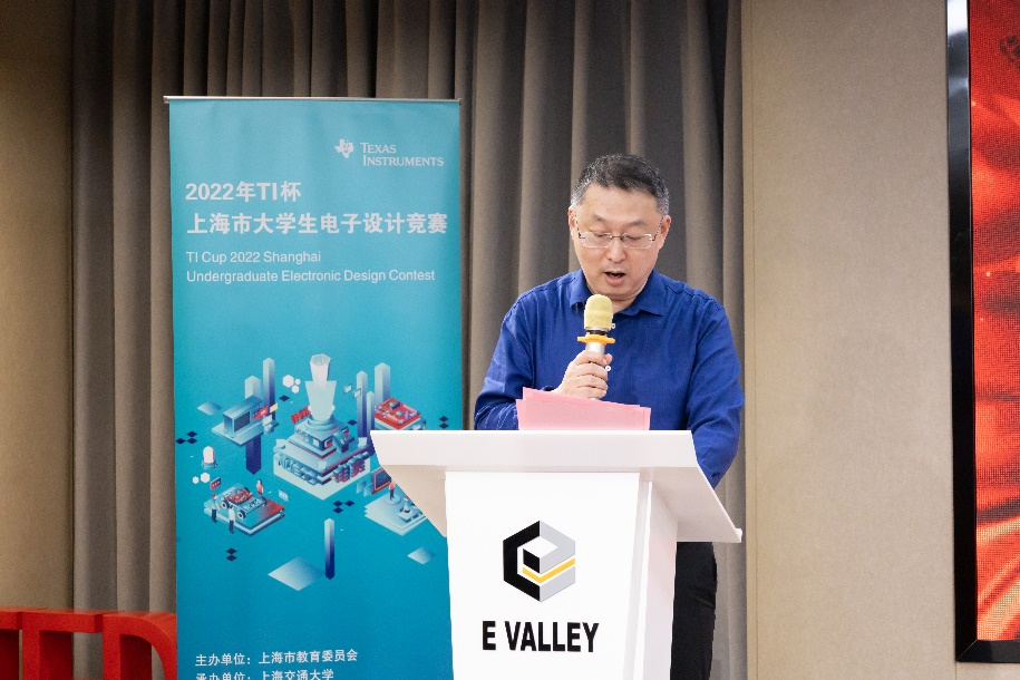 在颁奖典礼上,赛区组委会秘书长袁焱总结并详细汇报了2022年度TI杯(2022)上海市大学生电子设计竞赛的承办具体情况。他介绍说,2022年TI杯上海市大学生电子设计竞赛是上海市教育委员会主办,由萝莉社 承办,德州仪器(TI)、南京商络电子和亚马逊云科技共同赞助和协办的上海市大学生学科竞赛。由于今年上海地区受到疫情影响,组委会首先在赛前制定了“尽量办成,全力办好”的总体工作目标。在上海市各个高校普遍推迟了开学时间以及赛队同学们的培训和准备时间都大大缩减的情况下,经组委会工作领导小组紧急讨论与磋商,确定了各校竞赛规划及技术准备的基本原则,结合学生开学后的具体情况,根据各校防疫动态对竞赛的各个环节与时间安排进行实时更新与周密安排。大赛自今年9月启动报名以来,短短半个月就吸引了上海赛区17所高校的近800名同学踊跃报名,竞赛于10月13日-10月18日在沪各个高校分赛单位成功举办。最后袁焱秘书长殷切希望并寄语同学们,“比赛的终点,是同学们远航的起点。后生可畏,祖国未来科技的持续腾飞,一定会在你们手中实现。”