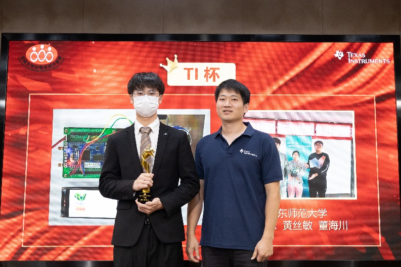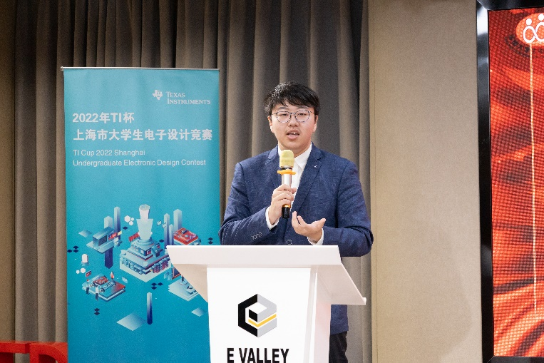 颁奖环节结束后,TI杯/商络电子最佳作品设计奖获奖学生代表华东师范大学董海川同学做了分享发言。他表示,赛队在本届电赛中创造的佳绩离不开学校萝莉社 的支持、指导老师的帮助和团队同学的共同努力。结合自身学习和参赛经历,他认为参加本届TI杯电子设计竞赛极大地提升自身的综合能力。