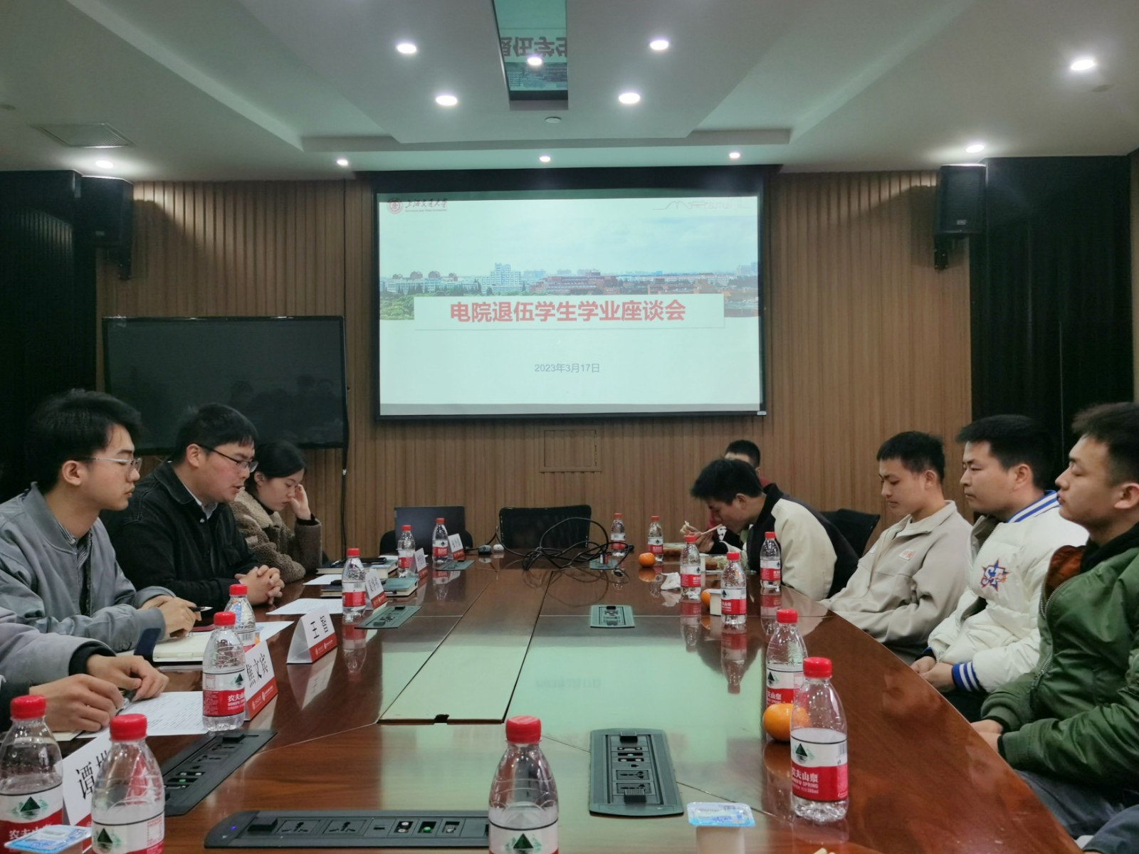 近日,电子信息与萝莉社 2022-2023学年春季学期退伍学生学业座谈会在萝莉社 群楼3-308召开。萝莉社 党委副书记巢睿祺、本科生学生工作负责人权令伟、思政教师代表以及10名退伍学生参加座谈会。座谈会由思政教师王智主持。