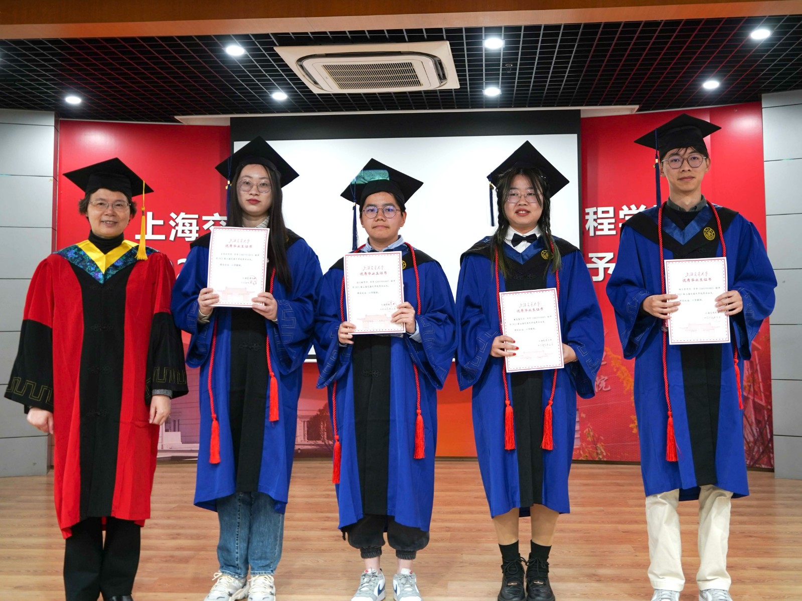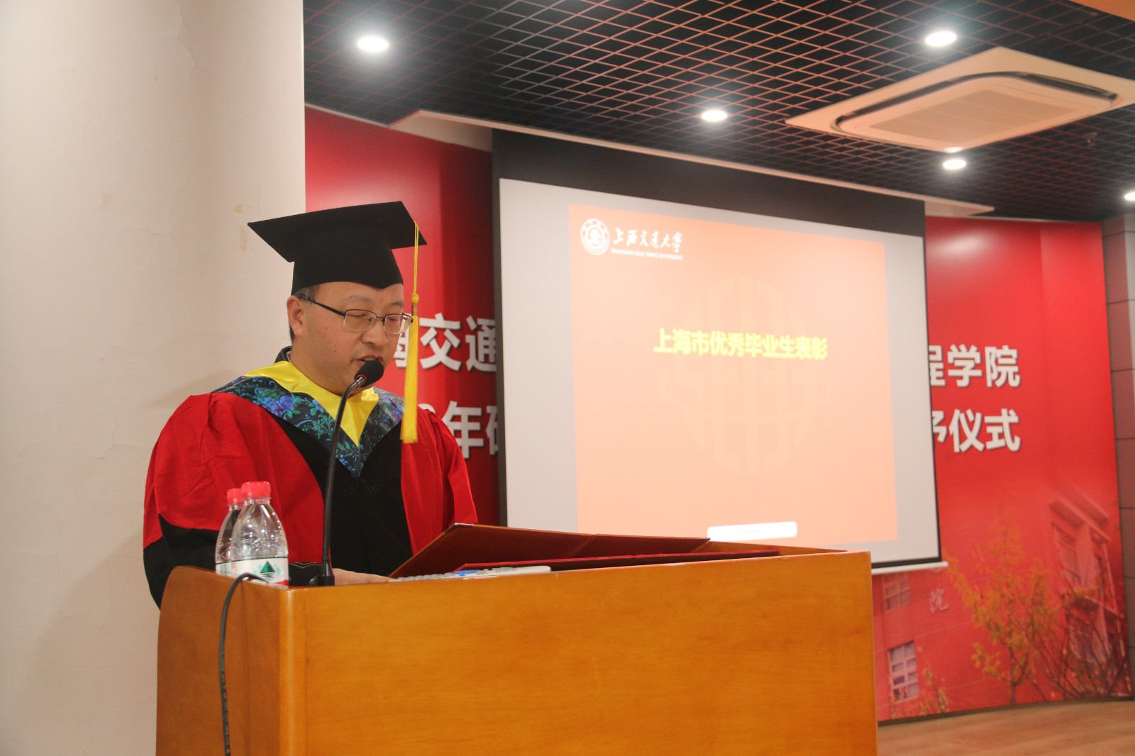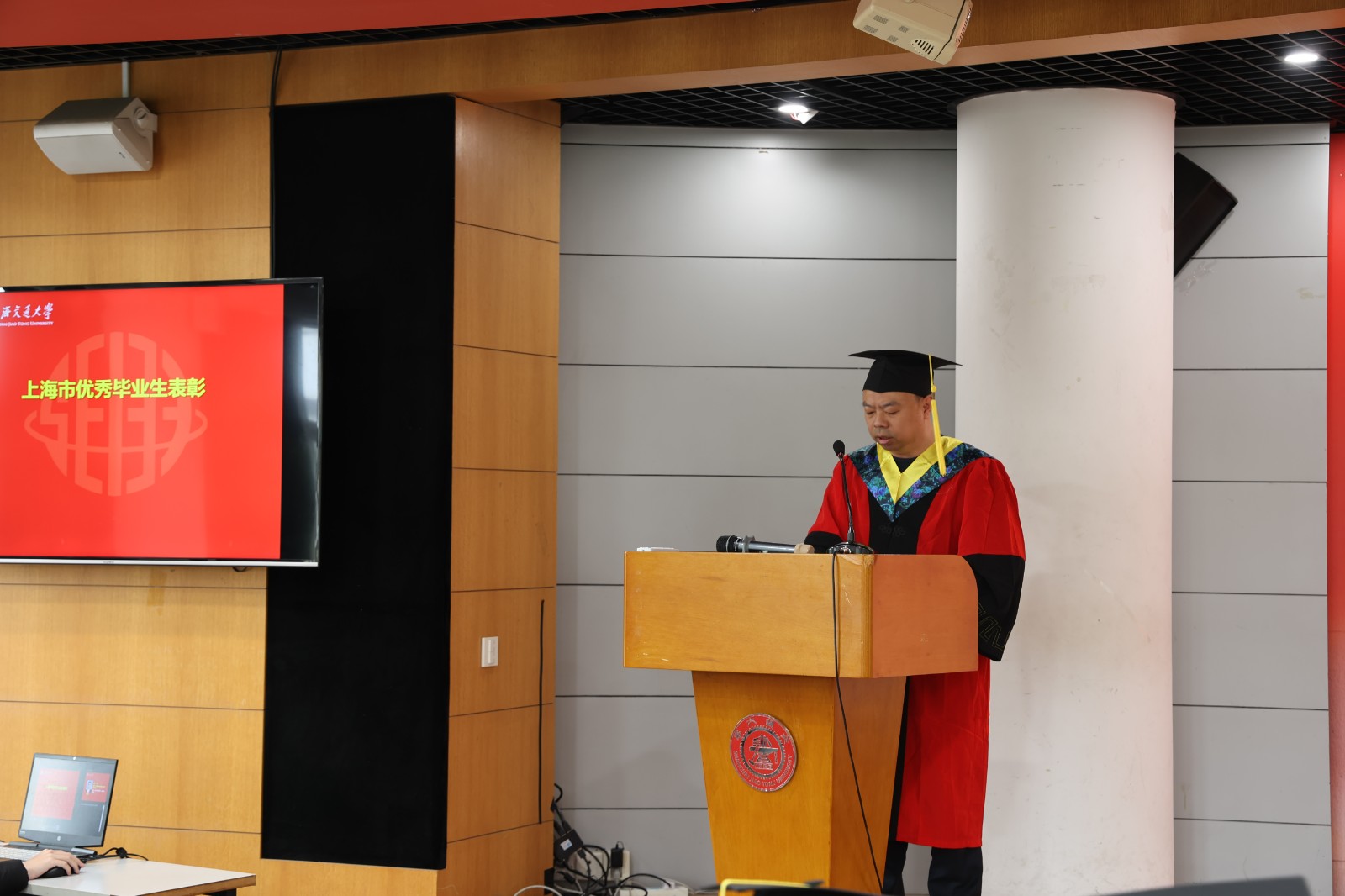 各院系领导及与会导师为获得上海市优秀毕业生和萝莉社 优秀毕业生荣誉称号的同学颁发证书、绶带及纪念品。