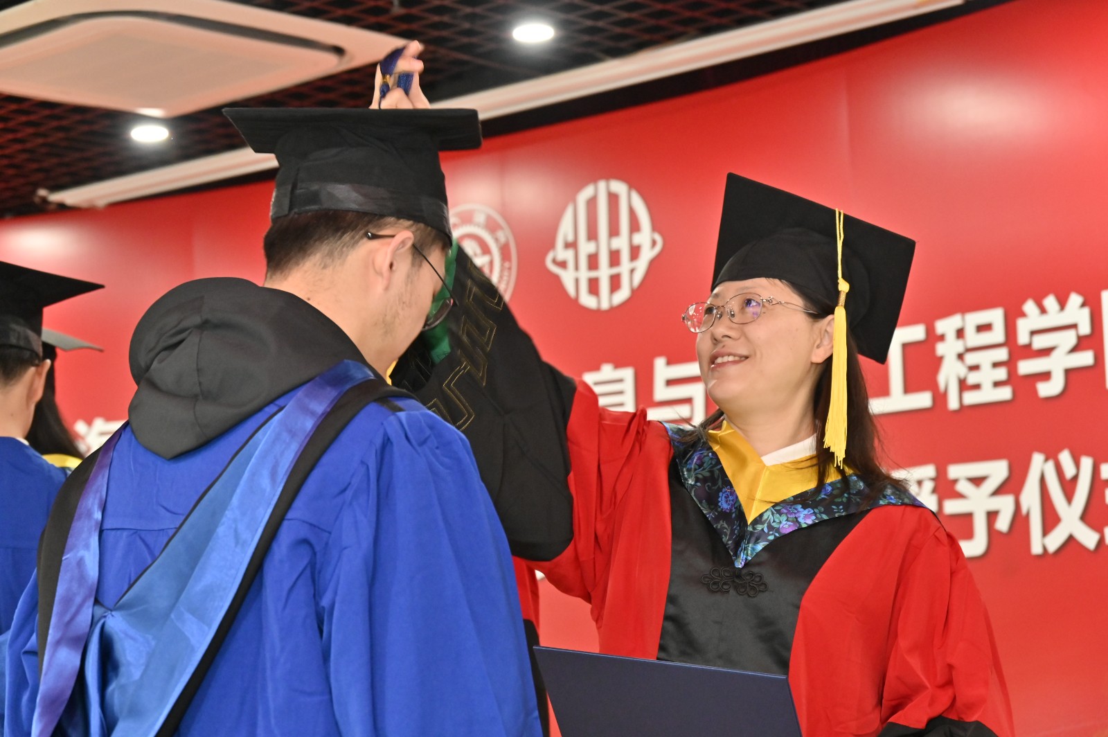 伴随着庄重的音乐,学位授予仪式正式开始。毕业生们身着学位服,怀着激动的心情依次走上主席台,从各院系领导及导师们手中接过学位证书,导师们为每一位毕业生轻轻拨过帽穗,握手祝福,并合影留念记录庄严的一刻,希望未来他们将书写更加光辉灿烂的篇章。