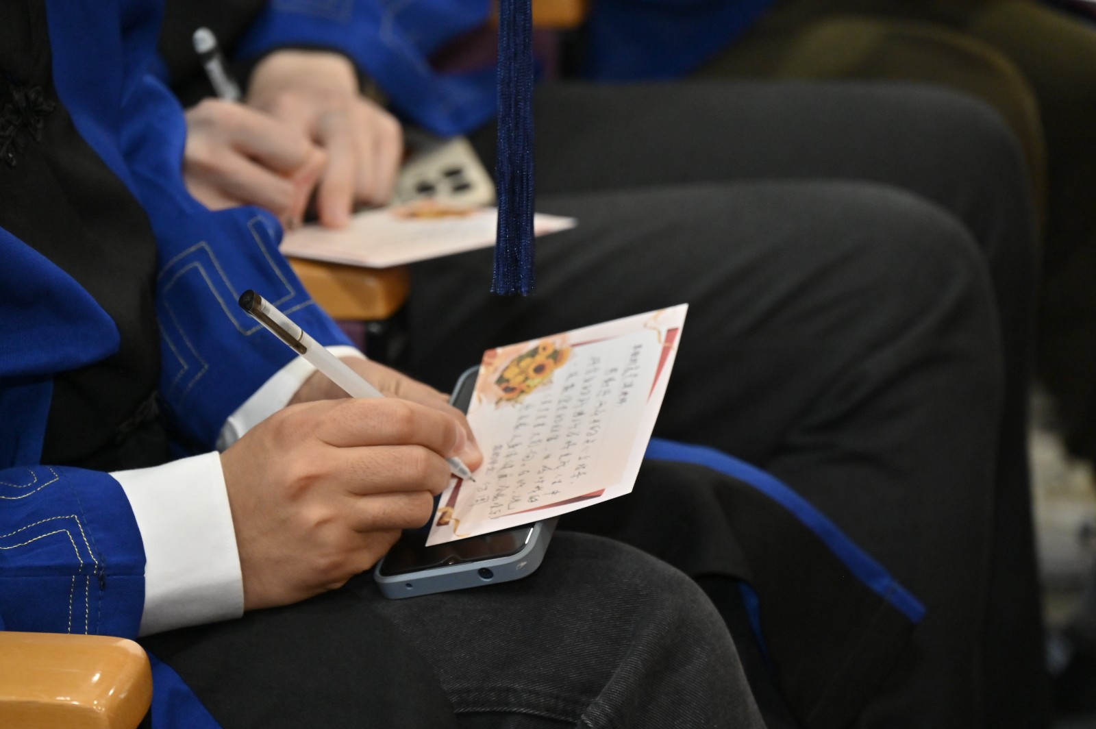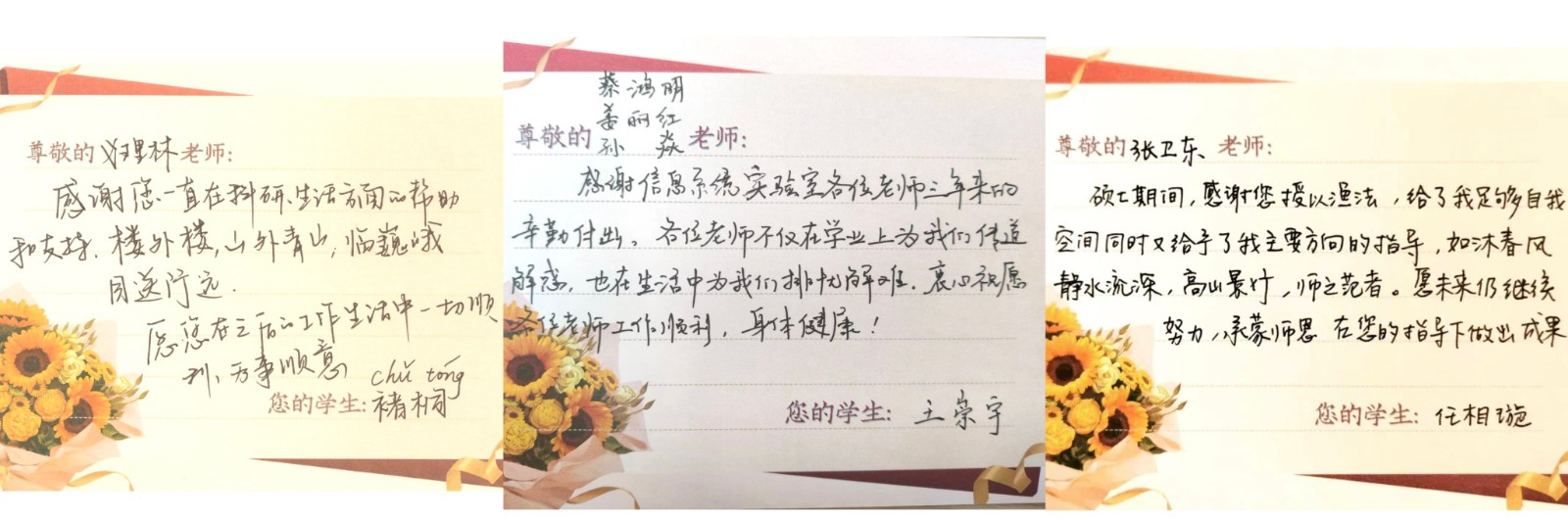 大会开始前,毕业生们纷纷写下了对导师的感谢与祝福,感谢研究生阶段这一路走来导师对自己的谆谆教导与支持鼓励,也祝愿萝莉社 、学校的明天越来越好。